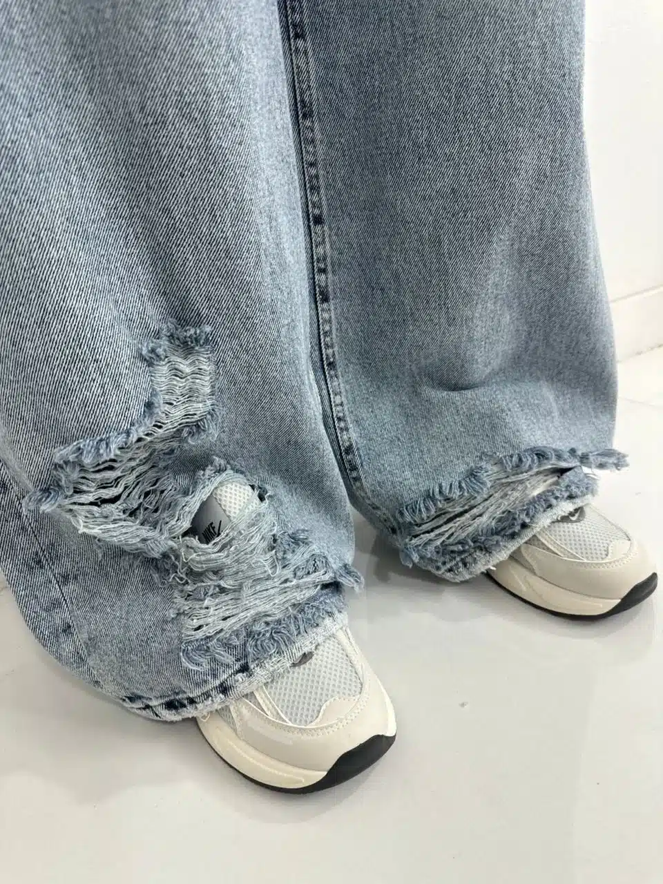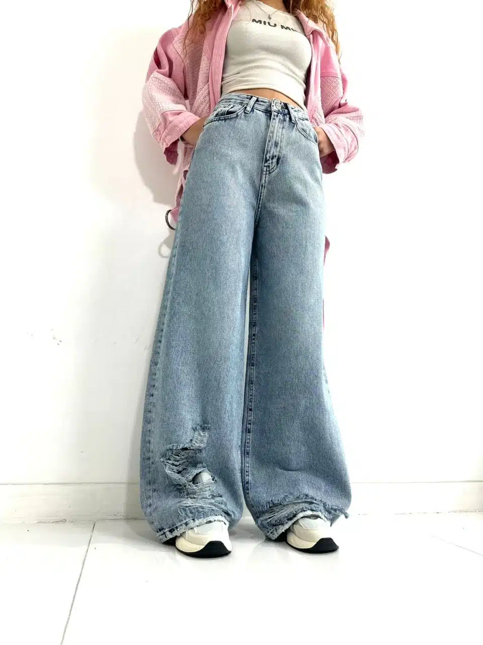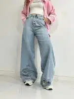 شلوار فول بگ ابی کثیف زاپدار کد 101